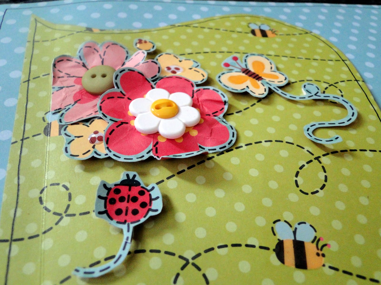 Inverti os papéis usados pela Nan (usei o verso deles) e consegui uma página que me agradou mais principalmente por causa do Vinny (o papel de florzinhas não me agradou muito... acabei usando o verde dele que é o azul de bolinhas...)